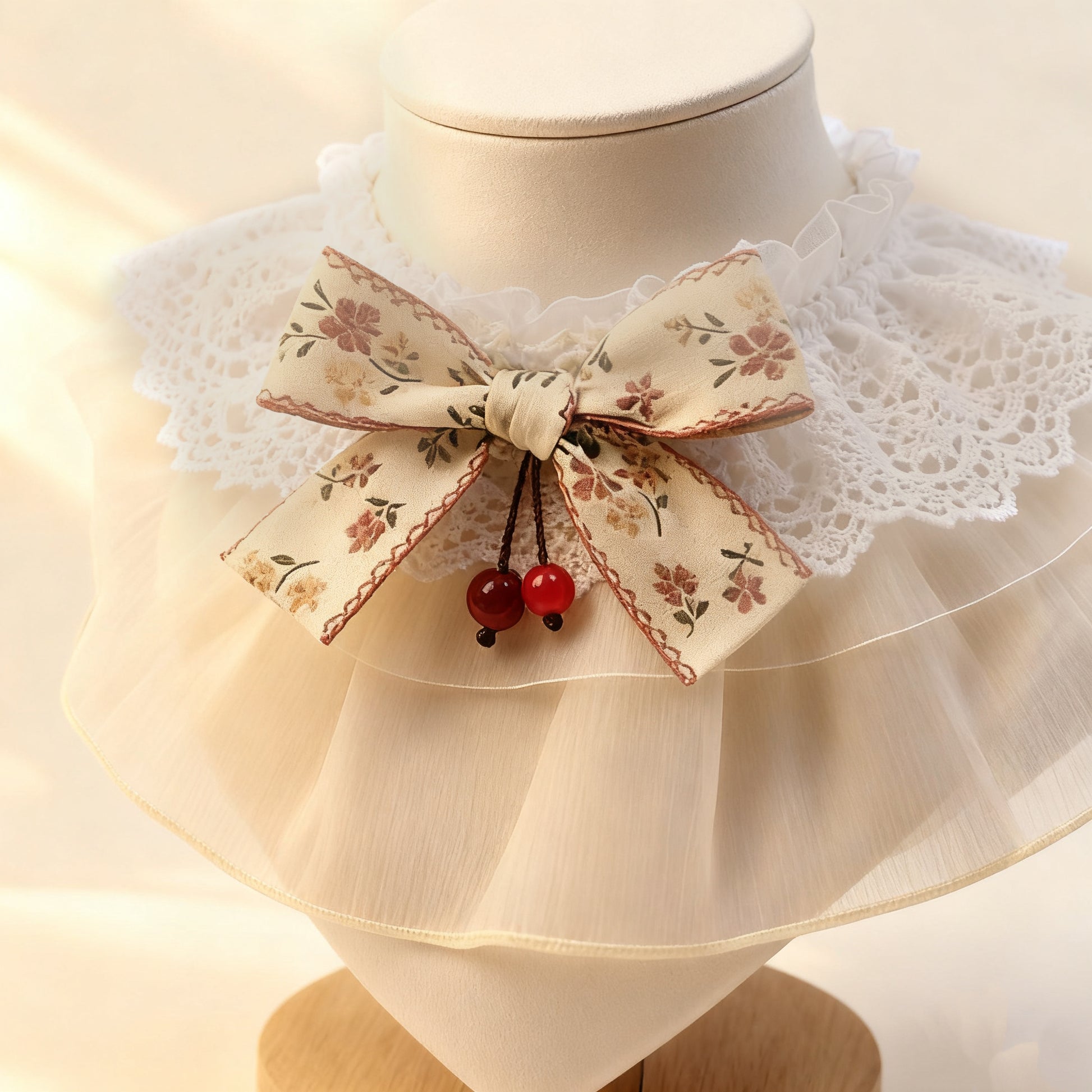 Design: Double-layer ruffle lace with ribbon bow